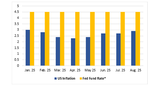 The Fed’s latest rate cut comes after months of pressure from government officials and in response to signs of a stalling job market, notwithstanding still low unemployment. In June 2025 the US economy lost 13,000 jobs, the first decline in more than three years. This was followed by gains of 79,000 in July and a significantly weaker 22,000 in August. In his statement, Mr. Powell indicated that while unemployment is low, there are downside risks confronting the labour market. In August, unemployment rose slightly to 4.3 percent from 4.2 percent a month earlier, suggesting that activity may be slowing in the economy. Nevertheless, with unemployment below 5 percent, the economy is considered to be in a state of full employment, where joblessness is typically frictional or structural.