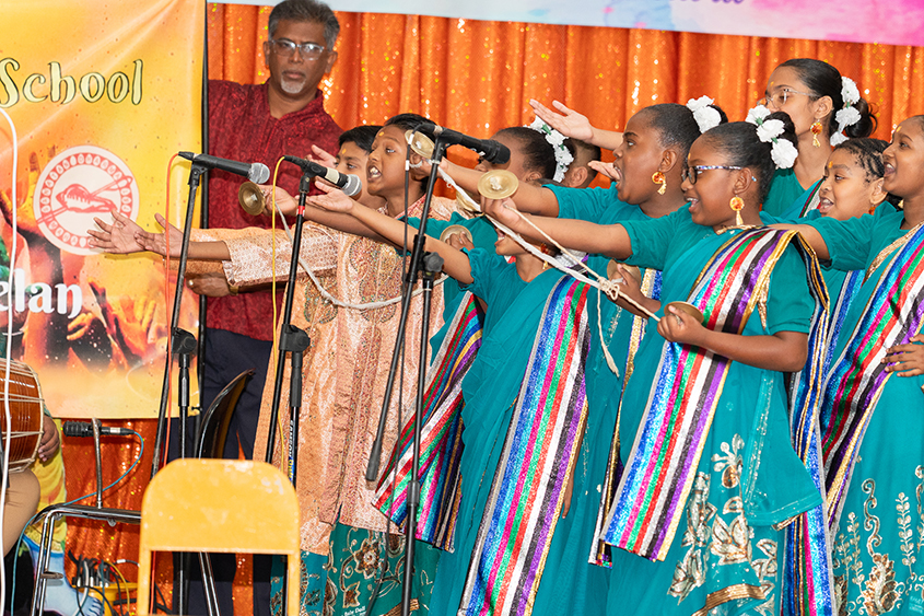 The students performed traditional Chowtaals – lively folk songs that are an integral part of the Phagwah (Holi) season. The performances were judged on drama, dance, rhythm and costume presentation, highlighting the students’ dedication to both tradition and artistic expression. The schools’ scores from the Chowtaal Sammelan contribute to their overall ranking in the Baal Vikaas Vihaar competition. To progress in this competition, these schools must also participate in other qualifying categories such as the Gita Test Piece, Ramayan Singing, Instrumental and Dance.