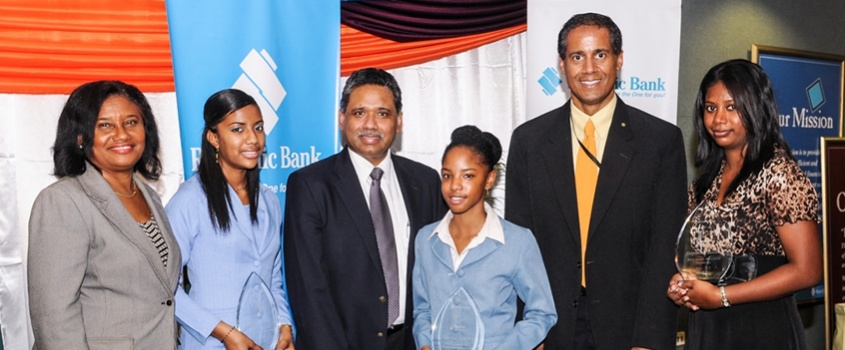 Caption: Republic Bank's Executives, pose with Stephenie Boodoo, Allana Forbes and Ria Dominique, who received special awards at the graduation ceremony of the 2011/2012, Republic Bank Youth Link Apprenticeship Programme, held on Tuesday May 8, at the Bank's Park Street office. Missing in the photo is Best All Round Youth Link Apprentice Geneve Loutan.