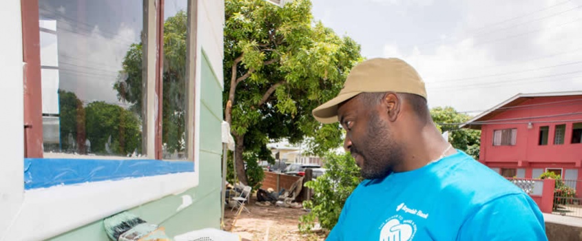 In deep concentration: Republic Bank’s Economist, Economic Intelligence Unit (E.I.U) Garvin Joefield, is in deep concentration as he paints during the Habitat for Humanity Leaders Build, held last Saturday at the home of Ms. Alistair Thomas, located at #24, Ninth Avenue, Barataria.